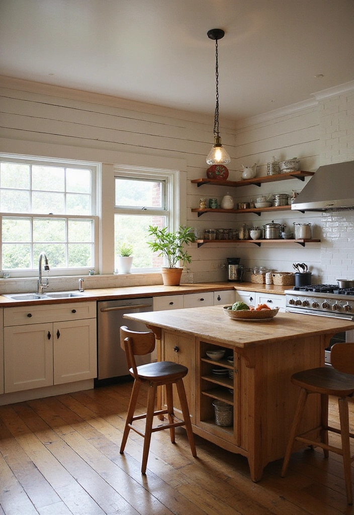 If you love the rustic charm of farmhouses but want the sleekness of modern design, this style is for you. Imagine a kitchen with shiplap walls, open shelving, and a large central island made from reclaimed wood. The contrast of the old-world charm with contemporary appliances creates an inviting space that feels both nostalgic and fresh.