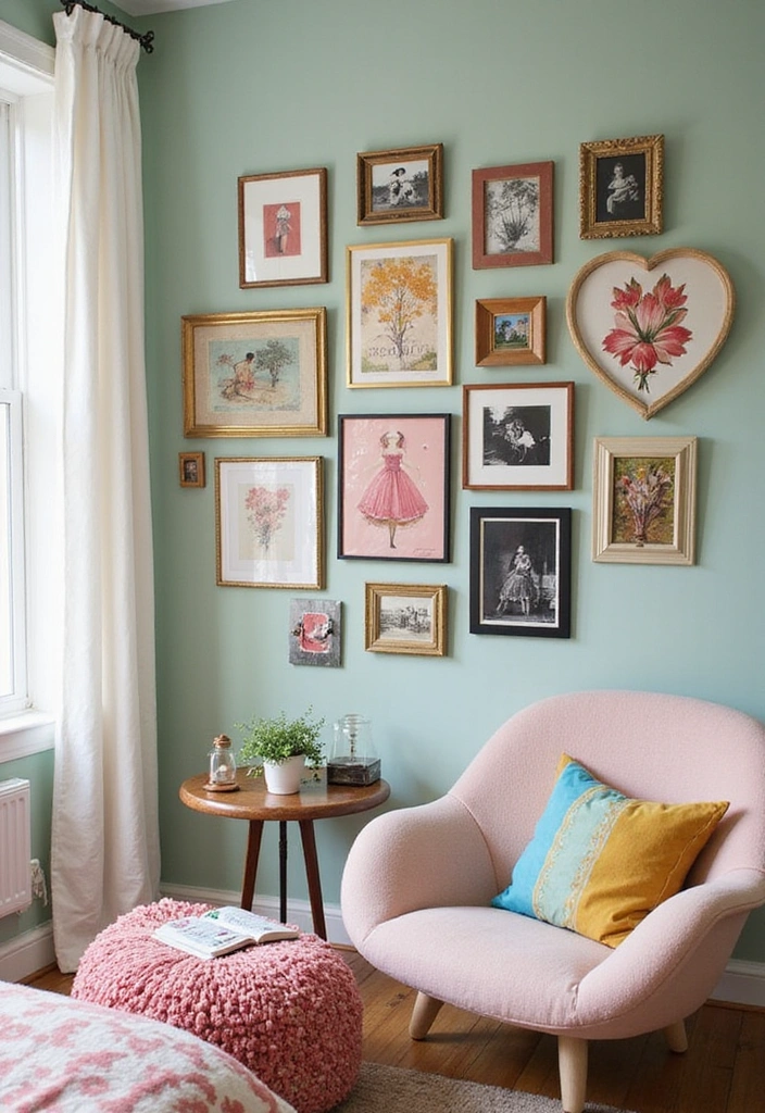 Consider using thrifted frames with a fresh coat of paint to unify the look, or mix different styles for an eclectic vibe. This personal touch not only makes the room feel more intimate but also allows you to showcase your favorite memories and inspirations.