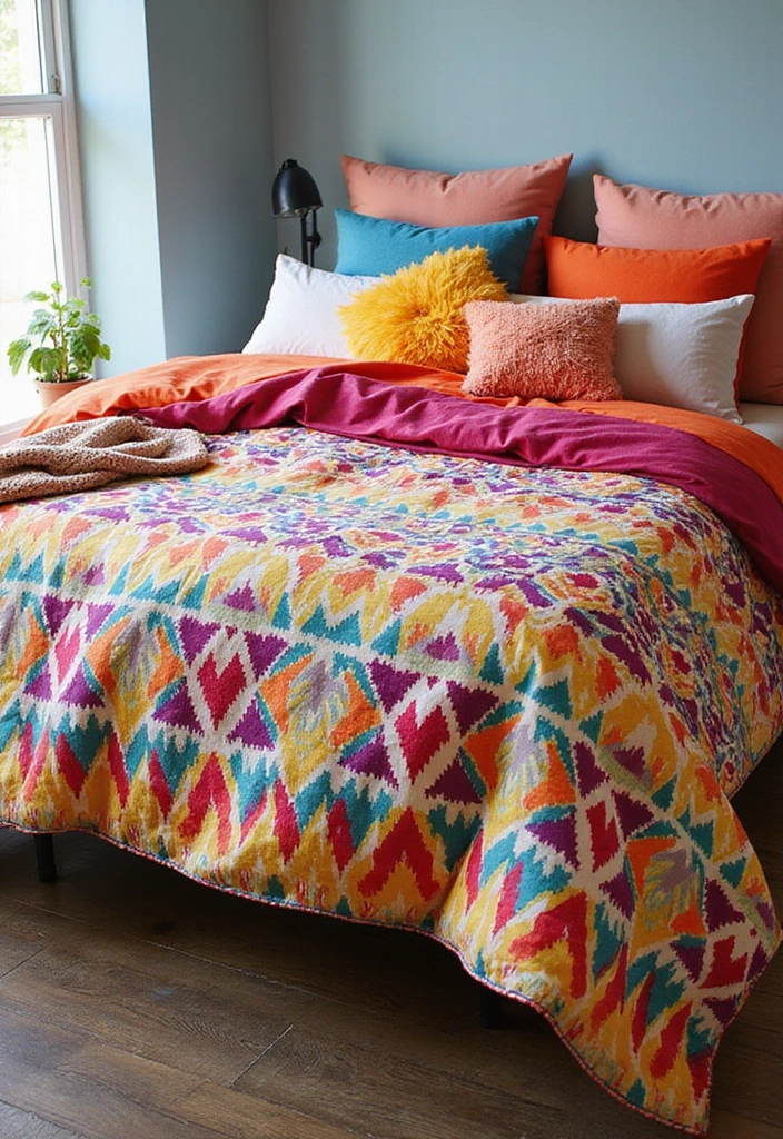 Opt for colorful or patterned bedding to add a pop of personality and warmth.