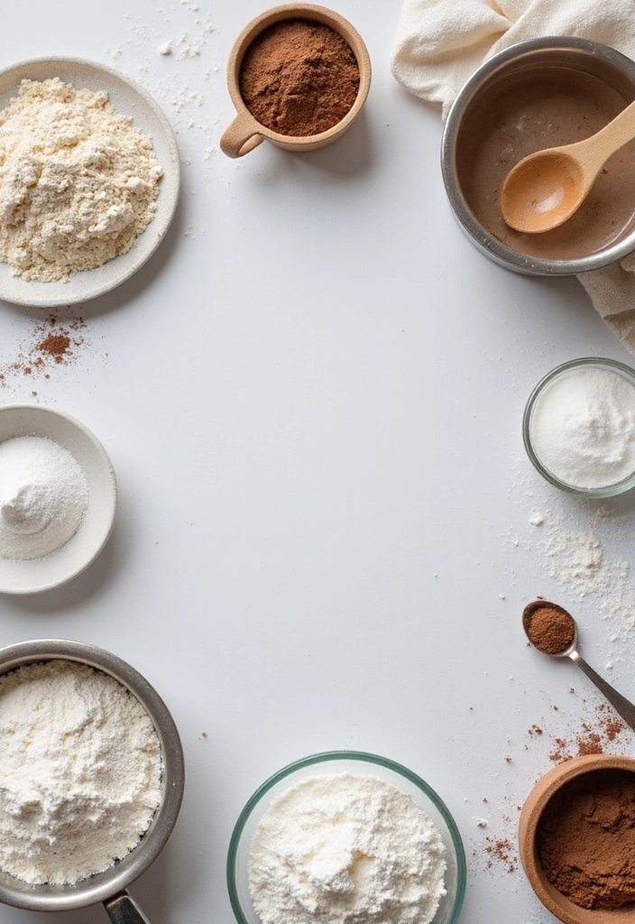 2. In a bowl, mix all dry ingredients: flour, cocoa powder, baking powder, baking soda, and salt.