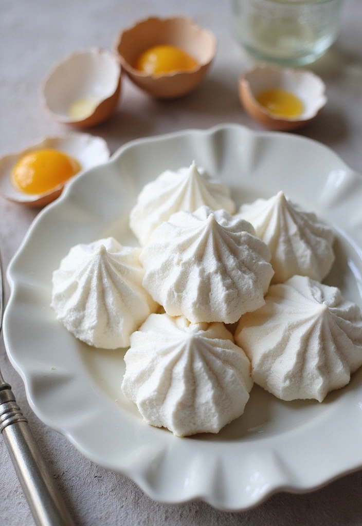 5. Pipe meringue onto baking sheets and bake for 1 hour.