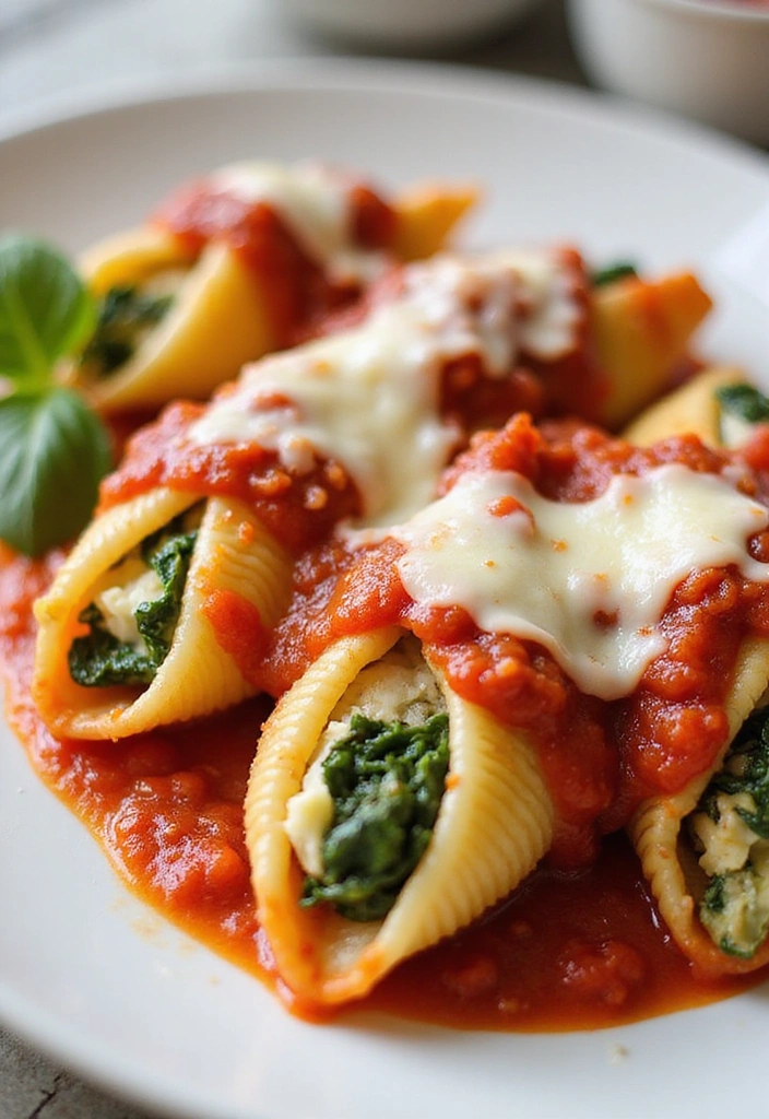 These spinach and ricotta stuffed shells are like little pockets of happiness! They’re filled with a creamy mixture of ricotta, spinach, and herbs, then topped with marinara sauce and cheese before being baked to perfection. This recipe is not only easy but also a great way to sneak in some greens for a delicious and comforting meal.