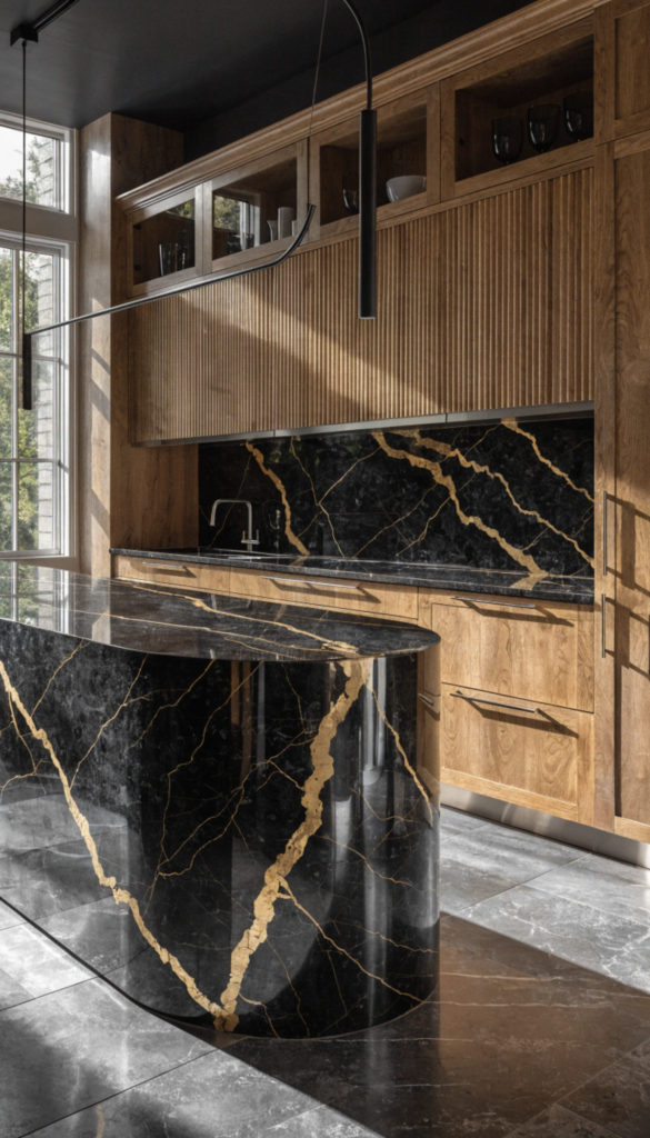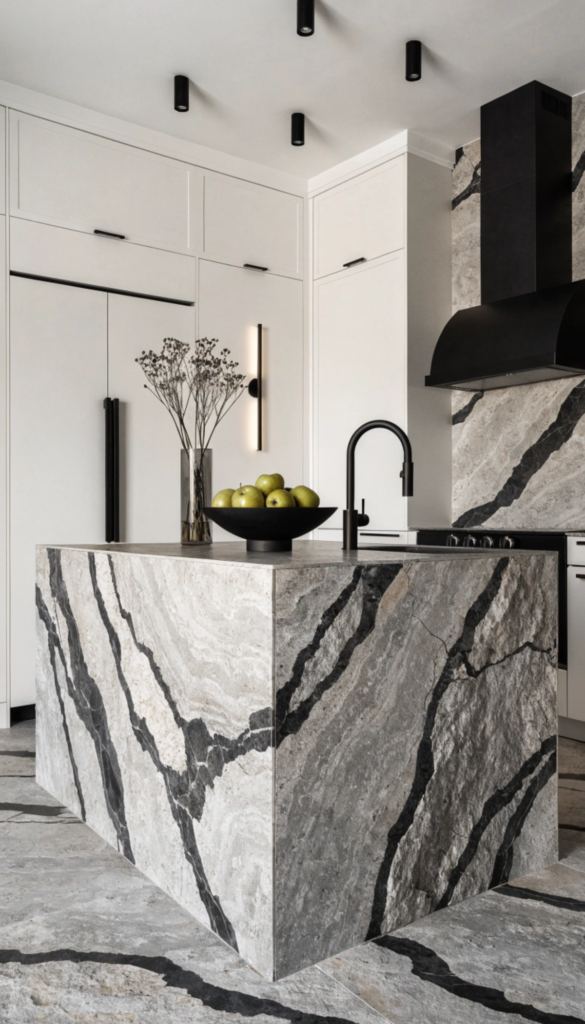• Why Developers Love It: It feels contemporary and edgy. It’s the perfect choice for a “waterfall” island where the veining can wrap seamlessly from the top to the floor.