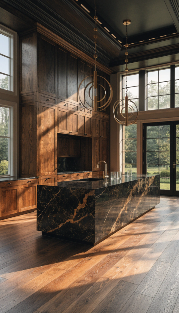 • The Pairing: It is the perfect companion for the trend of warm wood tones. Pair it with rift-sawn oak or dark walnut to create a kitchen that feels grounded, masculine, and incredibly expensive.