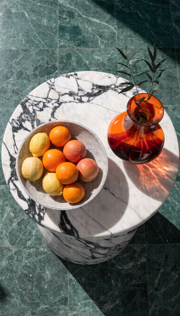 When working with these high-drama stones, follow the designer’s formula to ensure the room doesn’t feel cluttered: