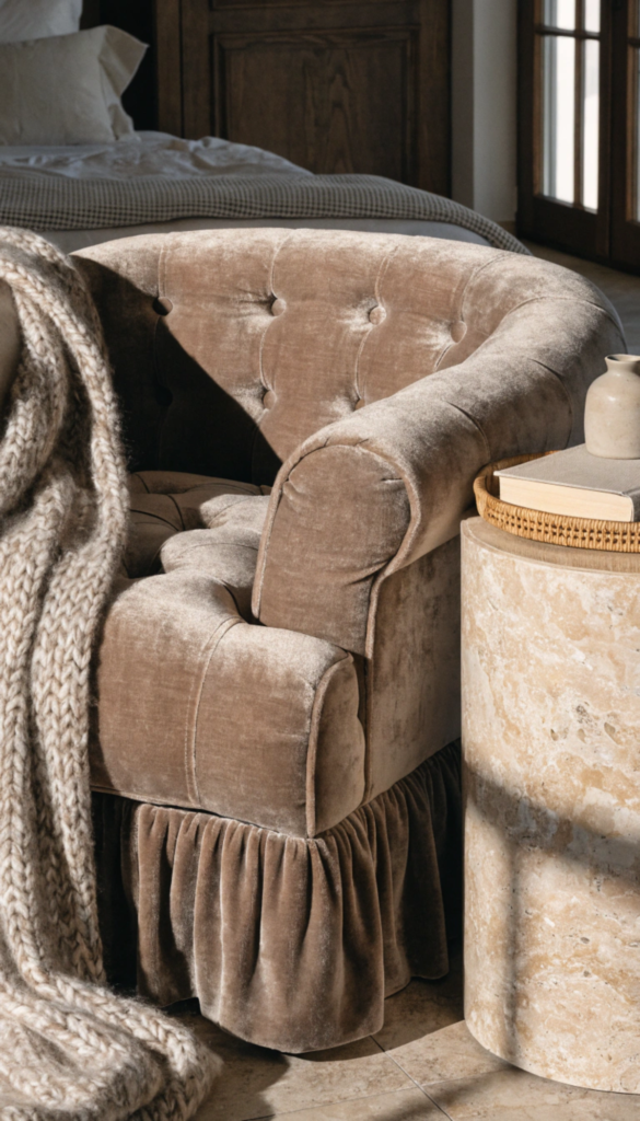 Think about the surfaces you interact with most in your bedroom: the bedding, the rug under your feet when you wake up, the upholstery on a chair, the curtain fabric as light moves through it. Each of these is an opportunity to introduce tactile interest.