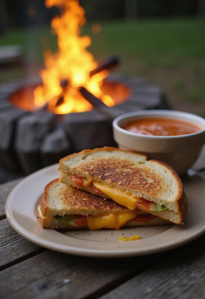 Nothing beats the classic combination of grilled cheese and tomato soup, even when you’re outdoors. Make your grilled cheese by stacking slices of cheese between bread, then grilling it over the campfire until golden and crispy. For the soup, heat canned tomato soup in a pot over the fire. Dip your gooey grilled cheese into the warm soup for a comforting meal that brings back memories of childhood, all while enjoying the great outdoors!