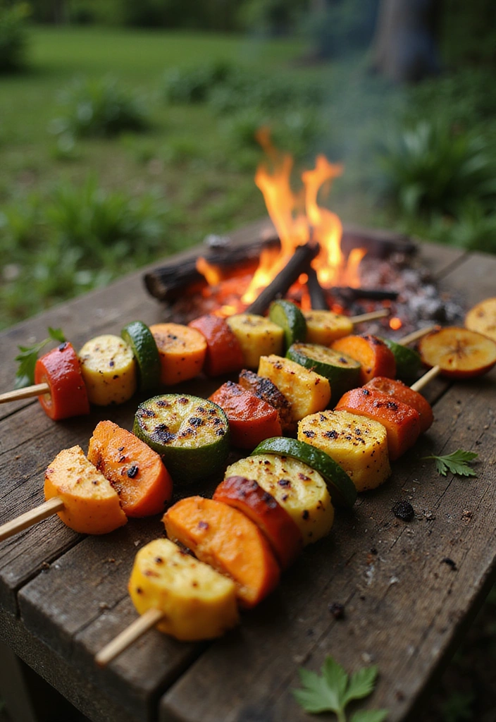 These veggie skewers are colorful, vibrant, and packed with flavor—perfect for a light, healthy meal in the great outdoors. Choose your favorite veggies, such as cherry tomatoes, bell peppers, mushrooms, and zucchini. Thread them onto skewers, drizzle with olive oil, and season with salt and pepper. Grill them over the campfire until they’re charred and tender. Not only are they visually appealing, but they’re also a great way to get your daily dose of vegetables while camping!